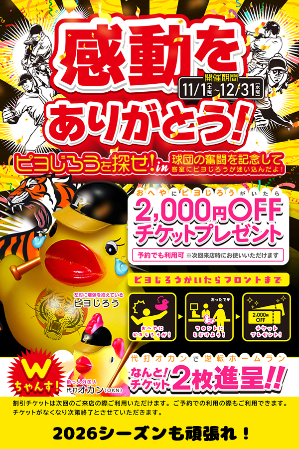 ピヨじろうをフロントへお持ちいただきましたら2,000円OFFチケット進呈!